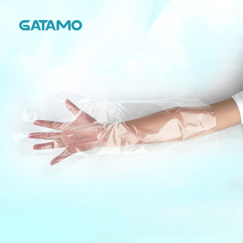 | Matériel: | PE, PE | Nom de produit: | Gants en plastique prolongés transparents jetables de PE des bons prix de Gatamo |
